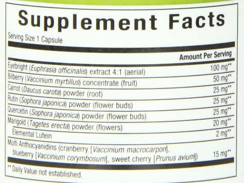 Natural Factors Eye Factors is a combination of herbs and nutrients that have been shown to help the eyes and reduce free radical damage to the eyes. Eye Factors includes the carotenoid, lutein, as well as bilberry, multi-anthocyanidins, carrot juice powder, and eyebright. All the herbs and nutrients in this formula are safe, and many are powerful antioxidants that fight free radical damage, one of the main reasons our eyesight deteriorates as we age.